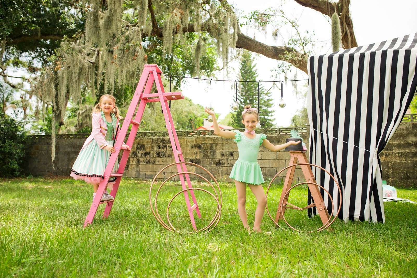 since it was a double birthday party i needed two cakes..the tent one i got the idea from a vintage party planning book, just changed it up to be more my style and match the party better. the trapeze cake was inspired by a cake lady on instagram... @cake_happens_ she made a beautiful cake with a zendaya sugar girl on it...i'm not that talented in the cake arena so i tried to figure out how i could re-create something similar but me. pictures and xacto knife for the win. i set up my girl with her costume on and a hoop and shot her from above, then printed 5x7's and cut her out and put her on her own tightrope on the cake.